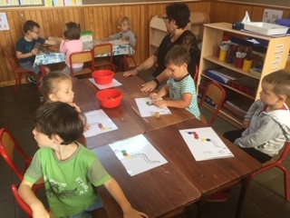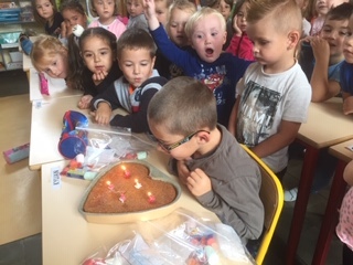 Les enfants commencent à prendre leurs marques dans l organisation de la classe et les ateliers tournent déjà bien:les petits ont appris les notions de « un peu » et « beaucoup », les moyens poursuivent l travail de numération avec des jeux mathématiques comme « le jeu du serpent » et les grandes sections ont commencé leur fichier de maths et leur plan de travail qui leur permettent d être autonomes. Cette semaine nous avons aussi de nouveau fêté un anniversaire: les 5 ans de Kylian vendredi 13 septembre.