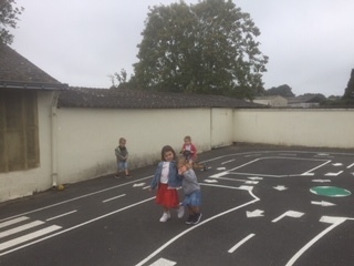 28 élèves se sont retrouvés mardi dans la classe maternelle avec quelques pleurs….Et oui il n’est pas facile de quitter ses parents! Au bout de trois jours tous les enfants commencent à prendre leurs marques et nous avons pu commencer les activités: peinture, gommettes, coloriages, jeux de numération de aussi de phonologie en GS. Nous avons aussi fait de la motricité: parcours et petites danses…
