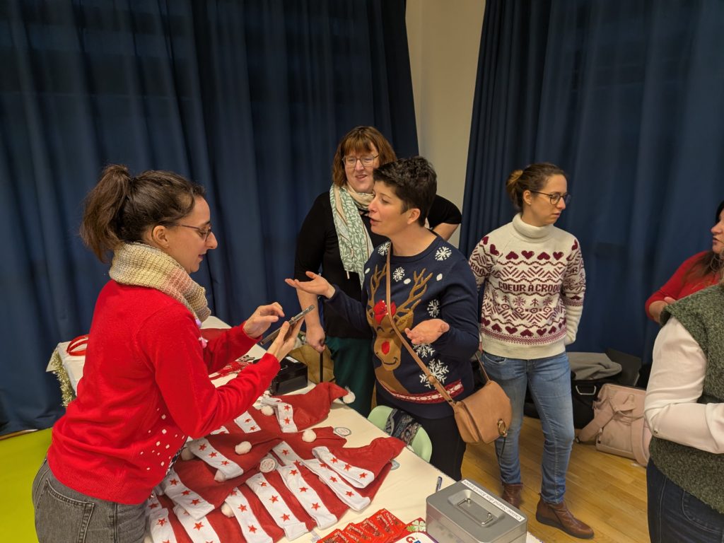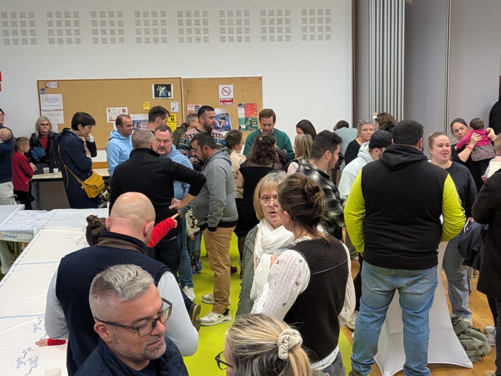 Pendant ce temps, les papilles n’ont pas été oubliées : boissons variées, vin chaud parfumé, crêpes et gaufres préparées avec soin par les parents d’élèves réchauffaient les mains et les cœurs. 🍫 Le repas à emporter a, lui aussi, rencontré un beau succès : poisson du marché, riz et petits légumes ou émincé de volaille sauce foie gras et son gratin ont conquis de nombreuses familles, prolongeant la fête jusque dans les maisons.