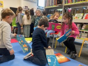 Vendredi 30 janvier, nous nous sommes rendus à la bibliothèque de Jans où nous étions attendus par l’animatrice qui nous a lu de jolies histoires.