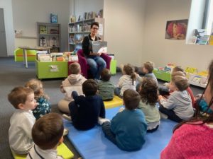Vendredi 30 janvier, nous nous sommes rendus à la bibliothèque de Jans où nous étions attendus par l’animatrice qui nous a lu de jolies histoires.