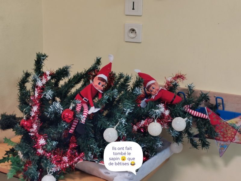 Deux petits lutins farceurs se sont invités dans la cantine pour passer le mois de décembre avec nous, chaque jour les enfants sont impatients de les trouver. Voici leurs bêtises de cette première semaine :