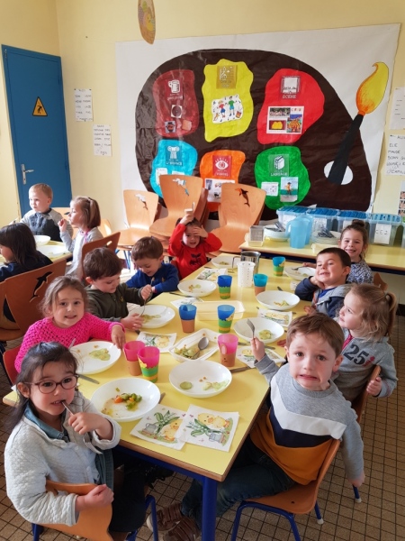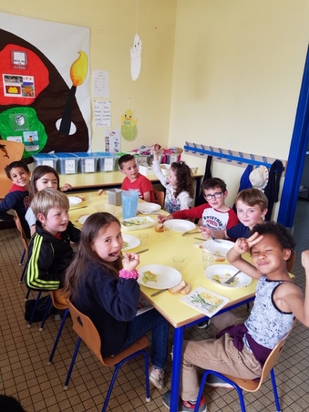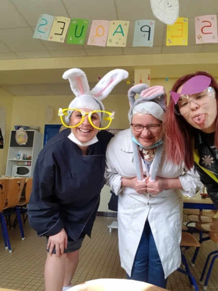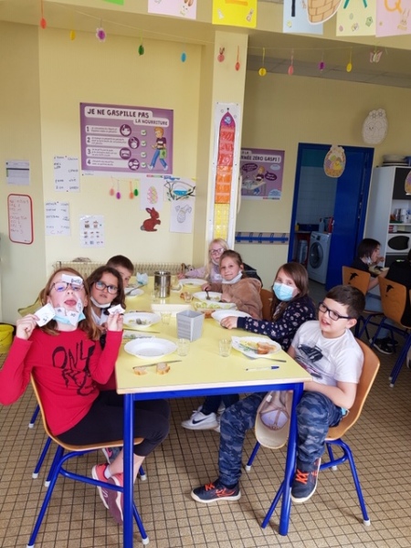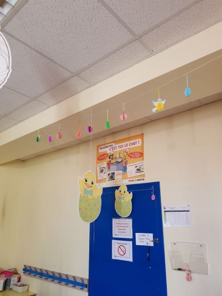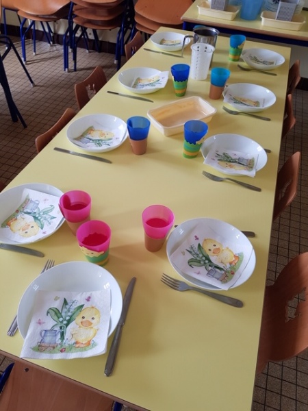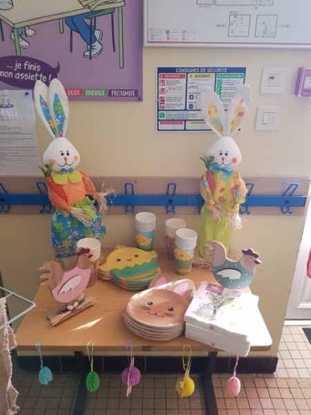 Jeudi 1er avril, la cantine a pris des airs de fêtes pour le menu de Pâques….De jolis lapins, poussins, ….ont égayé le repas des enfants….qui étaient ravis !