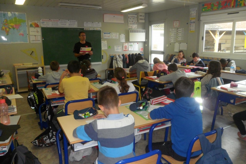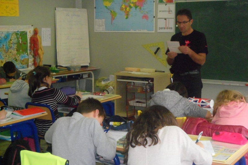 Jeudi 19 octobre, tous les élèves de CM1 et CM2 ont participé à la dictée organisée par l’association ELA (association de lutte contre les leucodystrophies) dans le cadre de l’opération nationale « Mets tes baskets et bats la maladie ». Philippe Macé, maire de la commune, est venu spécialement à l’école pour cet événement. Les élèves ont d’abord regardé une vidéo expliquant les leucodystrophies, maladie génétique orpheline qui s’attaque au système nerveux central et provoque de sérieux handicaps. Puis dans un silence total, les élèves ont copié le texte de la dictée lu par Mr le Maire, texte écrit par Leila Slimani. Cet événement s’inscrit dans notre projet d’école sur la citoyenneté et la sensibilisation des élèves à la différence. Rendez-vous nombreux le mercredi 25 avril sur le terrain de sport pour la prochaine étape: tous les élèves courront au profit de l’association selon un système de parrainage.