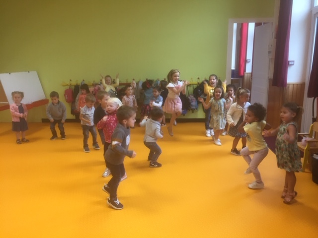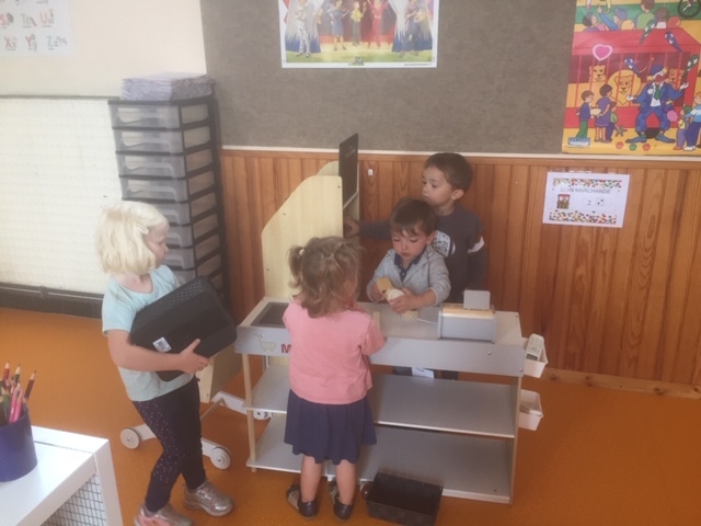 Le nouveau coin d’imitation « magasin » a remporté un franc succès ! Nous avons aussi dansé et les enfants ont bien profité aussi des jeux de cour grâce au soleil bien présent.