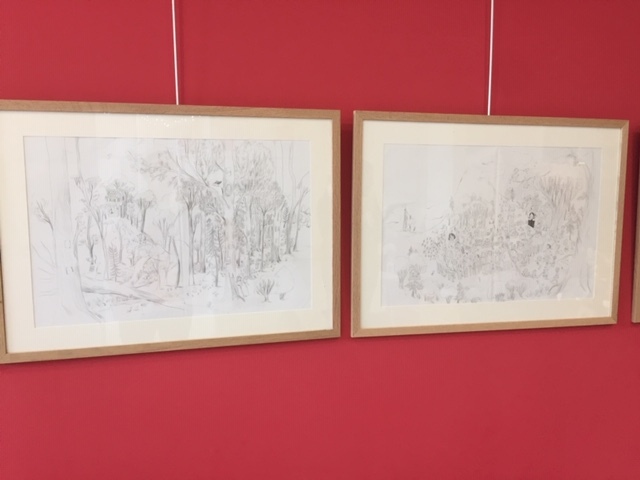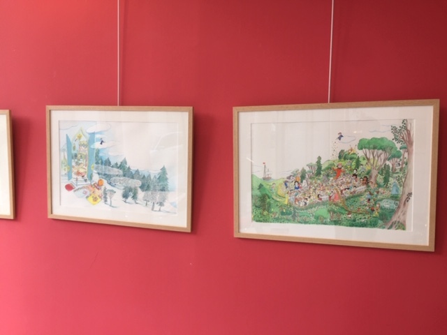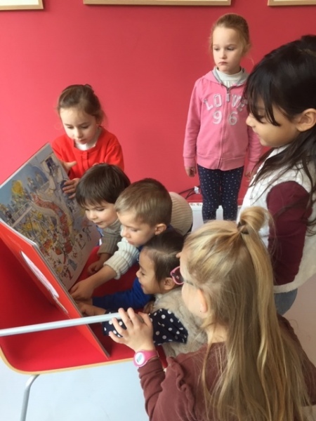 L’autre groupe est resté en bas pour deux autres animations. La première avec Béatrice a été de partir à la recherche du Petit chaperon rouge et du loup dans l’exposition et la deuxième avec Lydie de retrouver les cartes de l’histoire.
