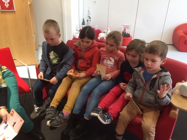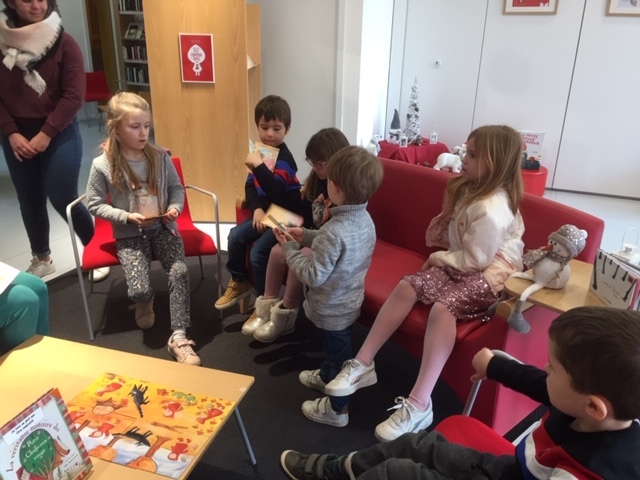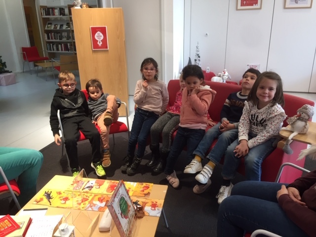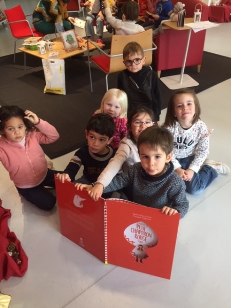 Mardi après-midi 6 décembre, les classes de PS/MS et GS/CP ont eu la chance de pouvoir se rendre à la médiathèque de Châteaubriant pour une animation autour de l’exposition « A la recherche du petit chaperon rouge » proposée par la Com-com.