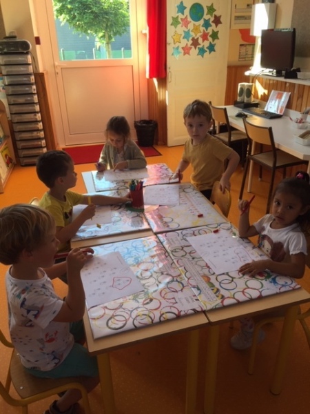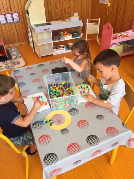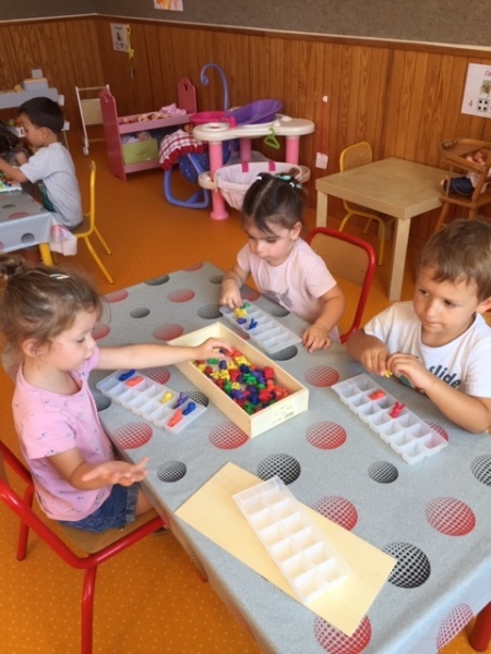 Le moyennes sections ont réalisé des paquets de 3 et ils ont travaillé sur les notions de « sur » « sous » « devant » et « derrière ».