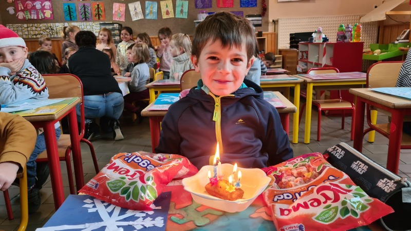 Trois champions cette semaine dans la classe maternelle : Axel et Maël  qui ont fêté leur 4 ans et Mélia qui a eu 3 ans !