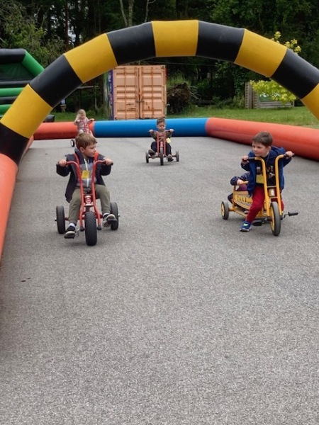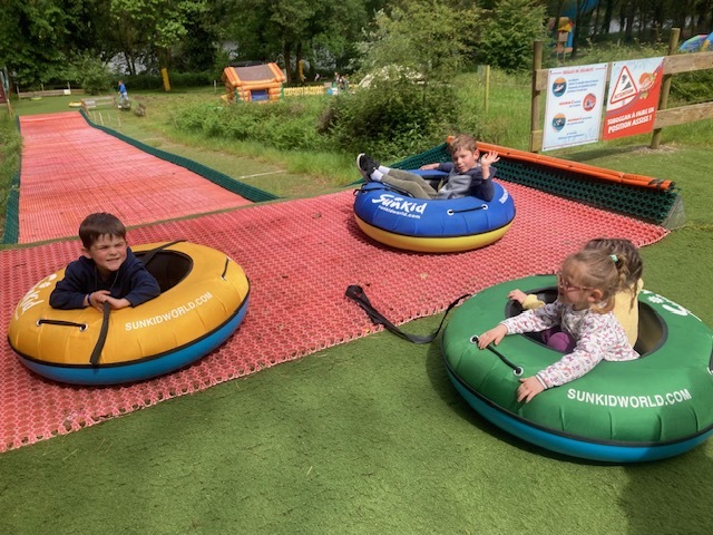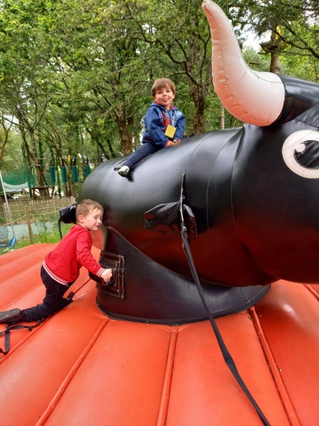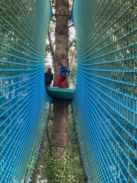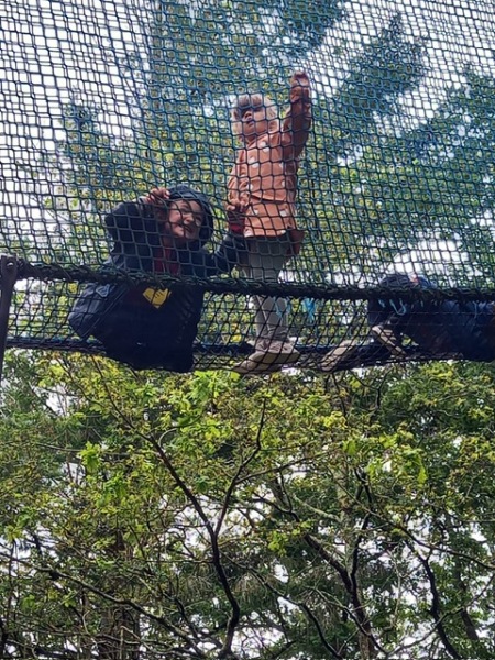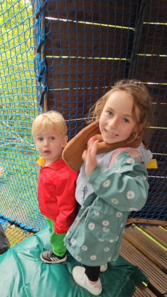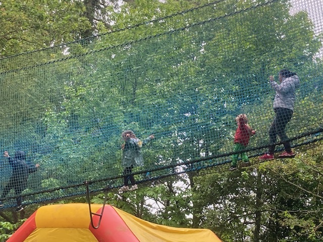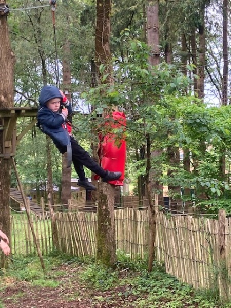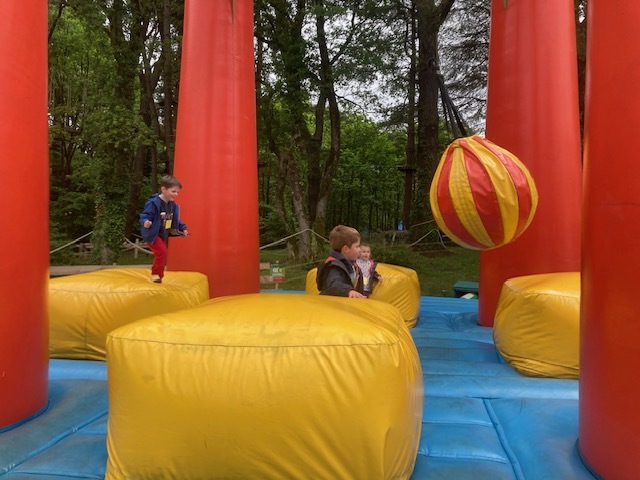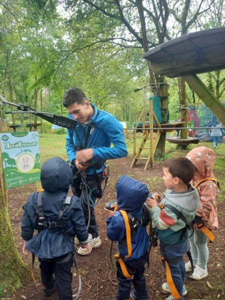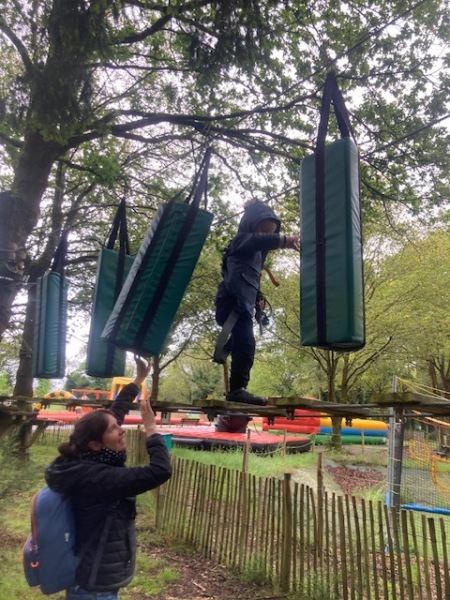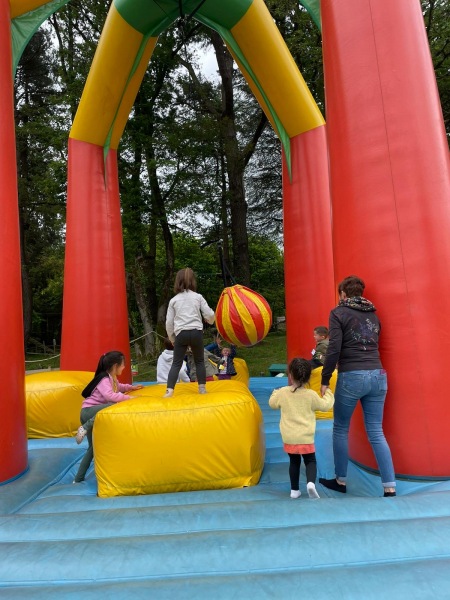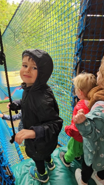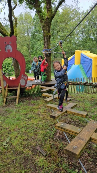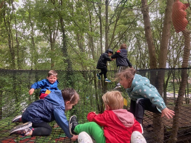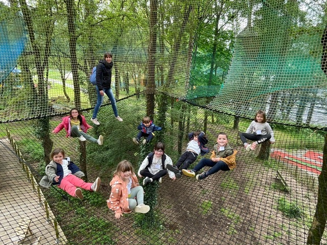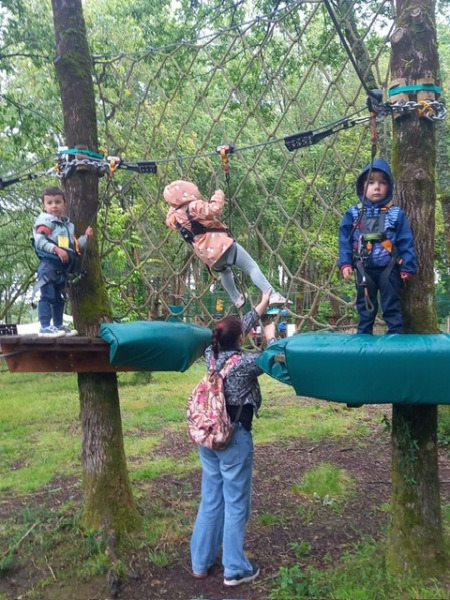 Chaque groupe a ensuite poursuivi son exploration libre du parc en profitant des différents jeux: parcours dans les filets dans les arbres, jeux gonflables, parcours de tricycles, bouées, trampolines,….Tout le monde en a bien profité et est rentré bien fatigué de cette journée !