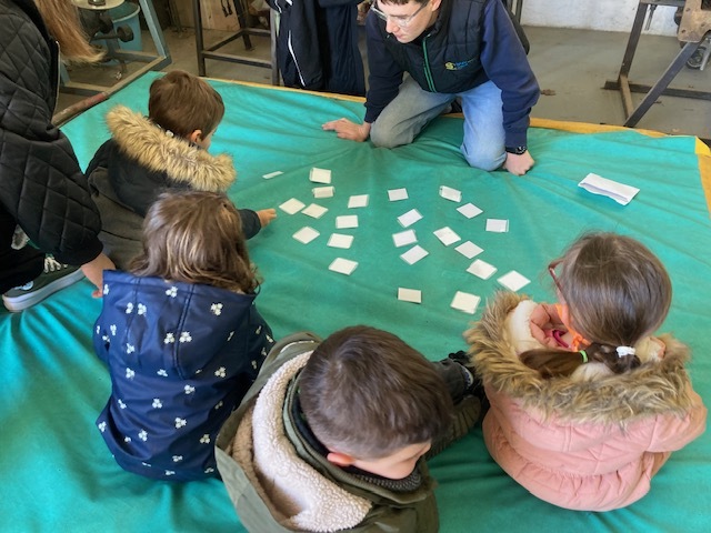 Nous avons commencé par jouer au mémory des animaux de la ferme où il fallait associer chaque animal à son petit.