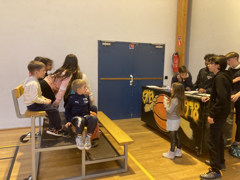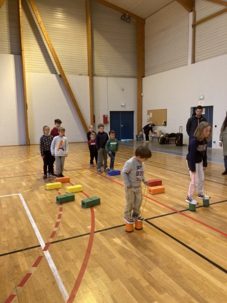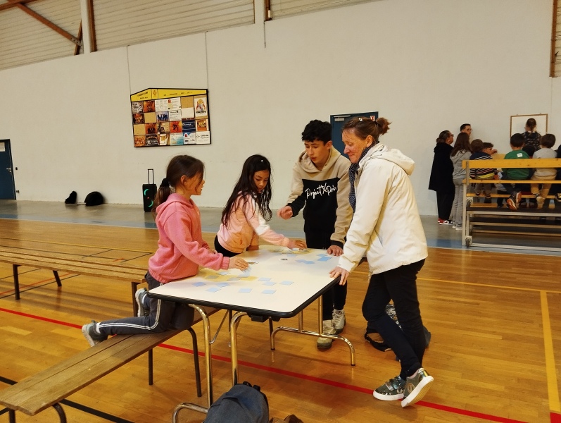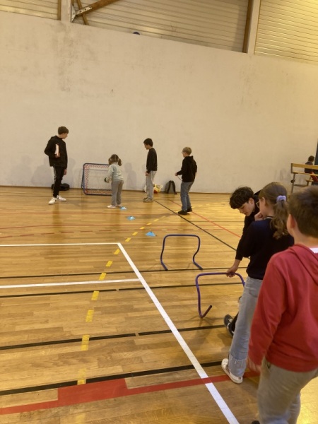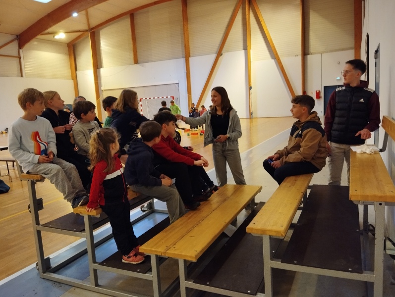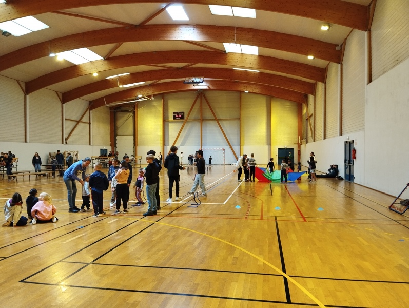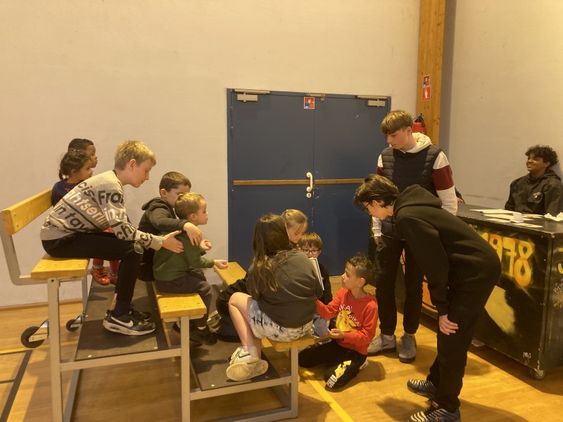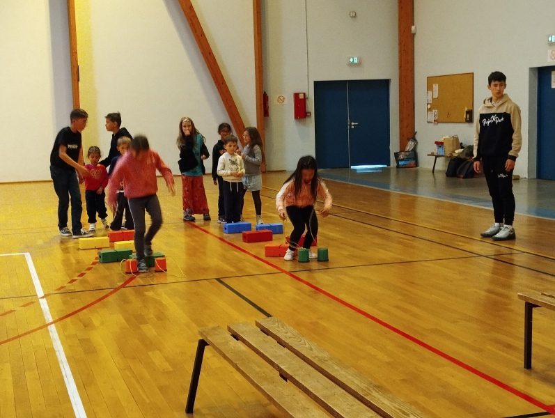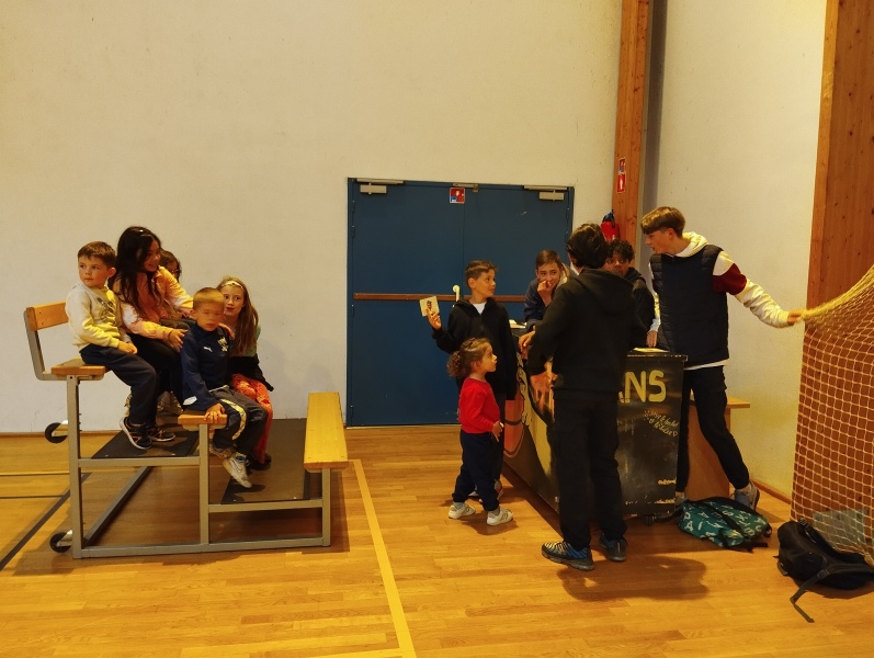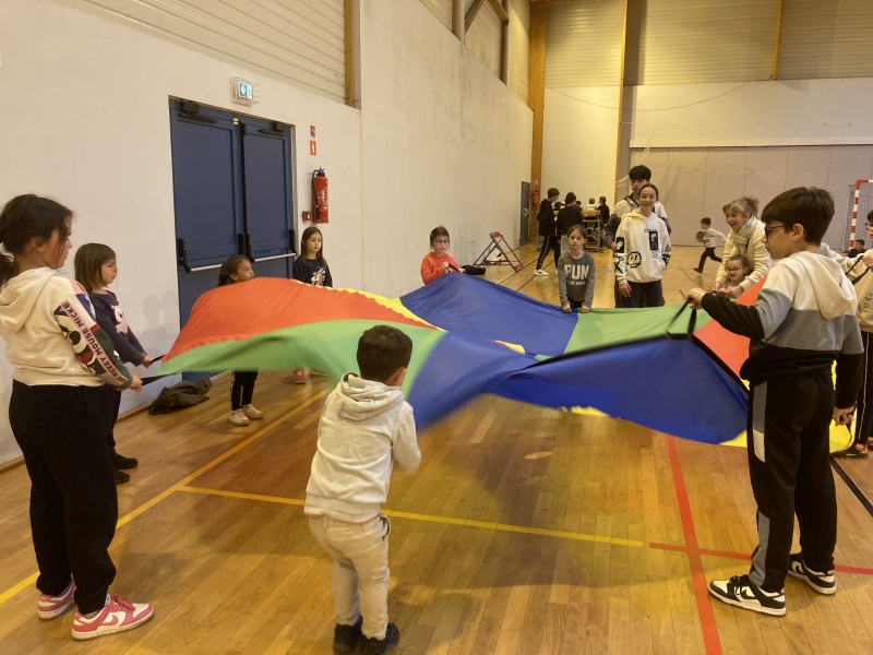 Lundi 12 mai après-midi, nous avons accueilli les élèves de 4ème du lycée agricole de Derval. La météo maussade nous a contraint à nous replier à la salle de sport afin de pouvoir profiter des activités qu’ils nous avaient préparées. Avec leur professeur de français et de sport, ils ont organisé pour nous des ateliers sportifs (parcours, parachute,…) et d’autres sur le vocabulaire (mime, dessinez c’est gagné, charades,..).