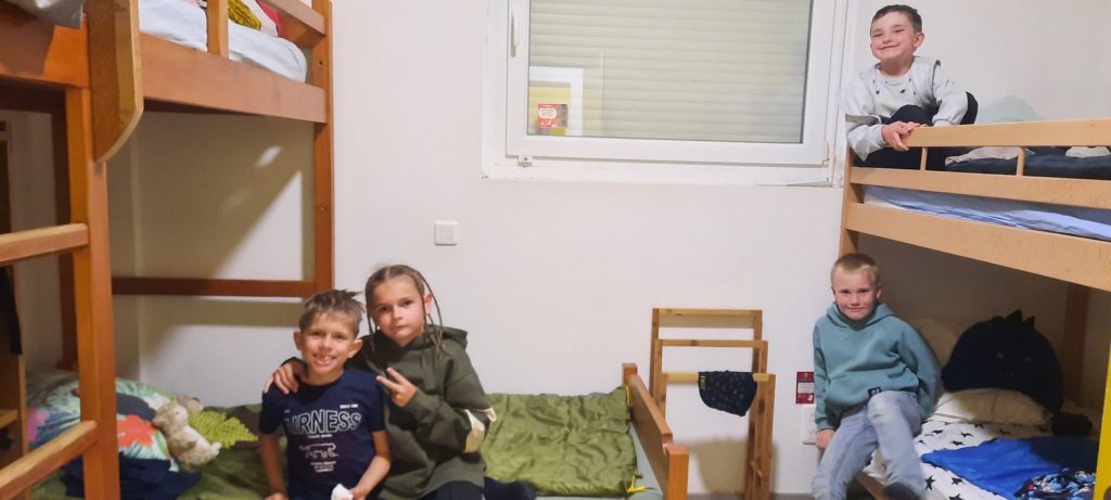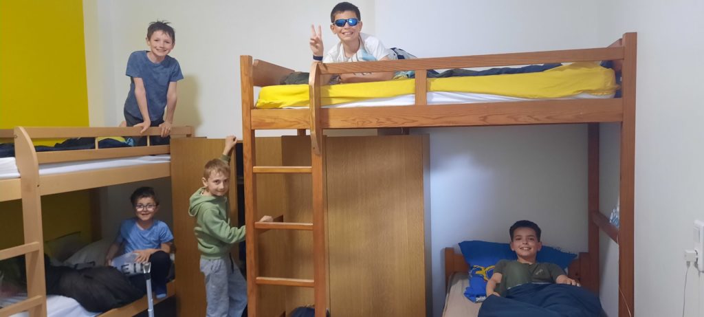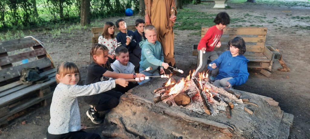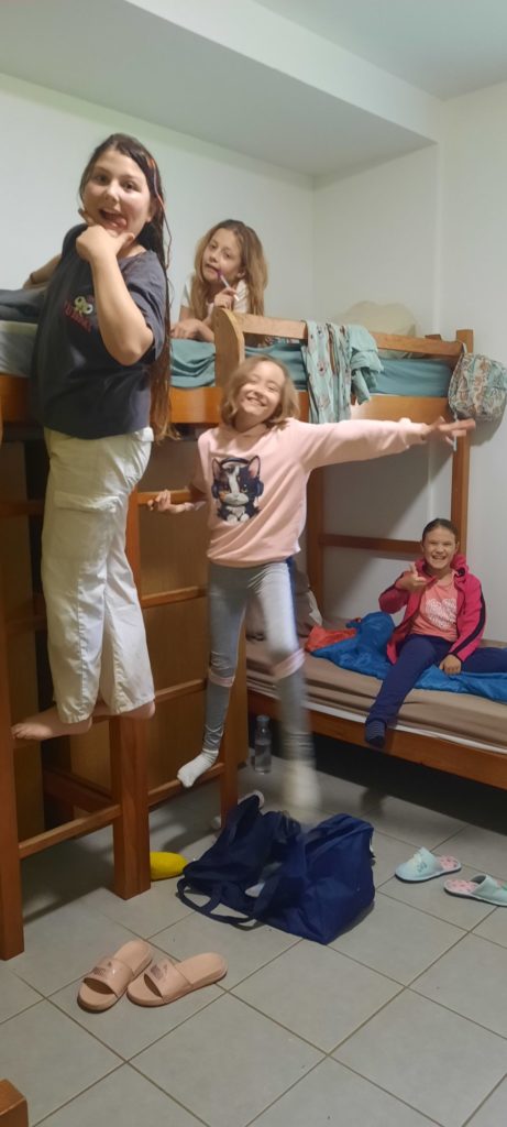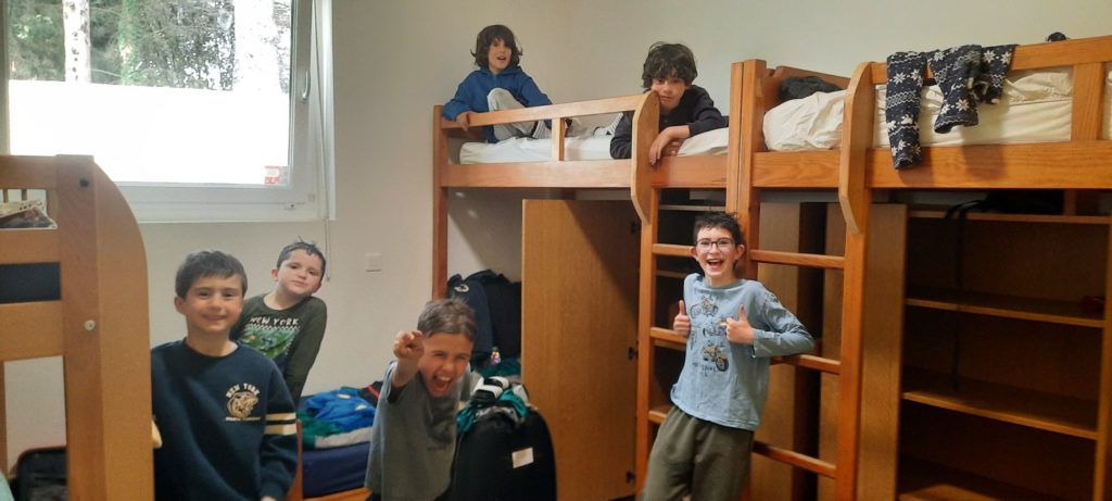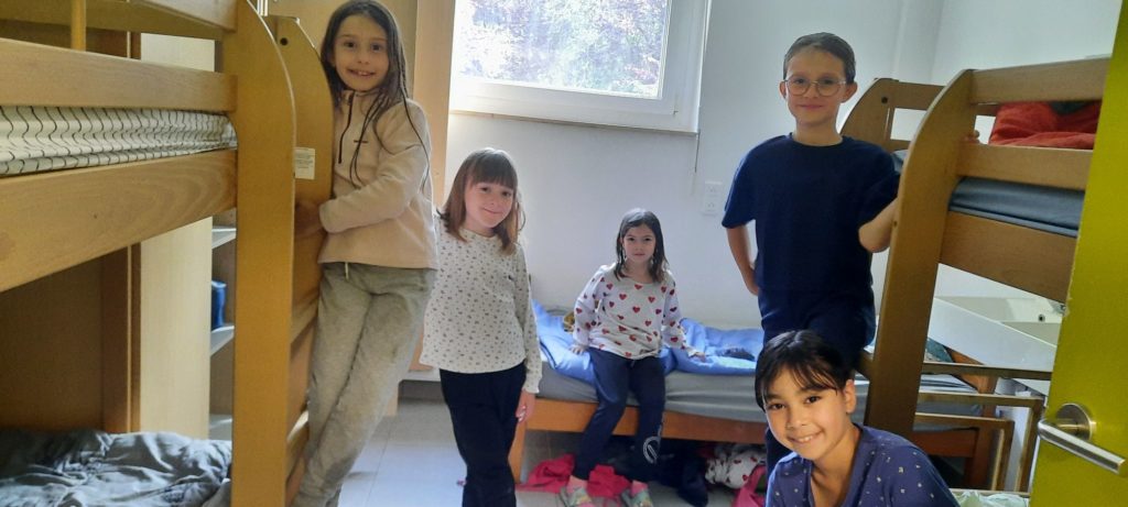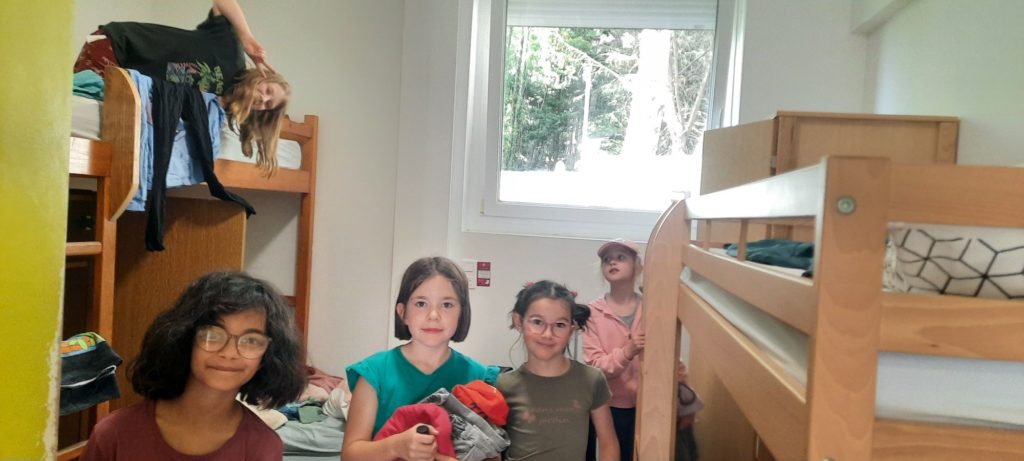 Installation dans les chambres avant la veillée feu de camp et chamallows grillés