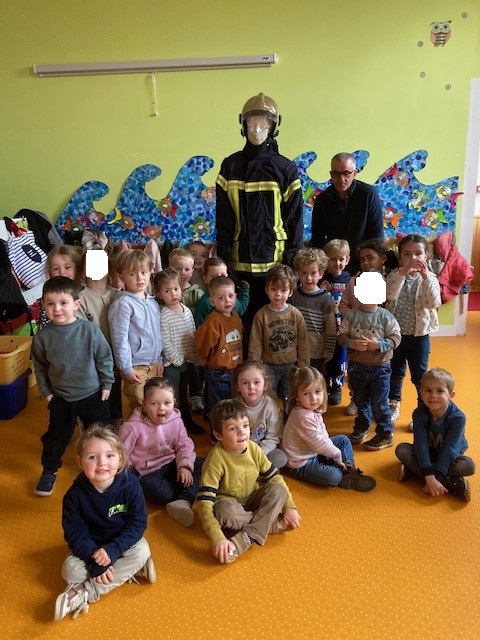 Dans le cadre du projet « La matern’ailes donne des ailes », nous avions lancé une invitation auprès des parents, grands-parents, …de la classe, celle de venir nous présenter un talent. Nous avons donc eu la joie d’accueillir Stéphane, grand-père de Mavrick, qui est venu nous présenter sa passion: être sapeur-pompier volontaire. Il avait apporté un mannequin