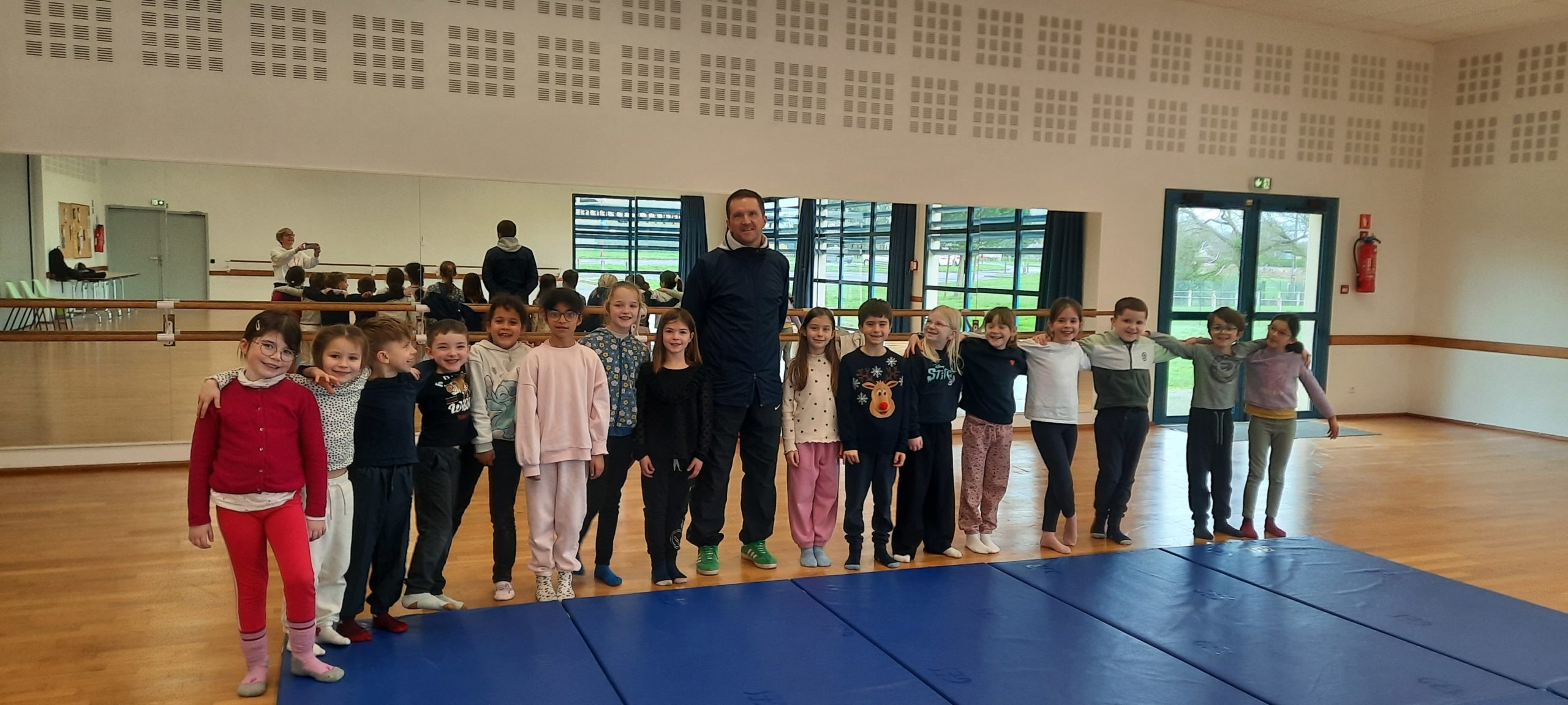 Après 6 séances animées par Ludo, éducateur sportif de Châteaubriant, nous avons terminé aujourd’hui notre cycle d’acrogym. Au cours de ces séances, nous avons appris à découvrir notre corps, à coordonner nos mouvements et à travailler par groupe pour créer des figures . C’était génial !